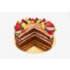 Naše novinka pro milovníky čokoládových dortů! Zachovali jsme náš kakaový bezlepkový korpus a promazali ho pikantní marmeládou z lesního ovoce. Do krému z tvarohu, mascarpone a šlehačky přidáváme belgickou čokoládu. Navrch dort zdobíme čerstvým ovocem.